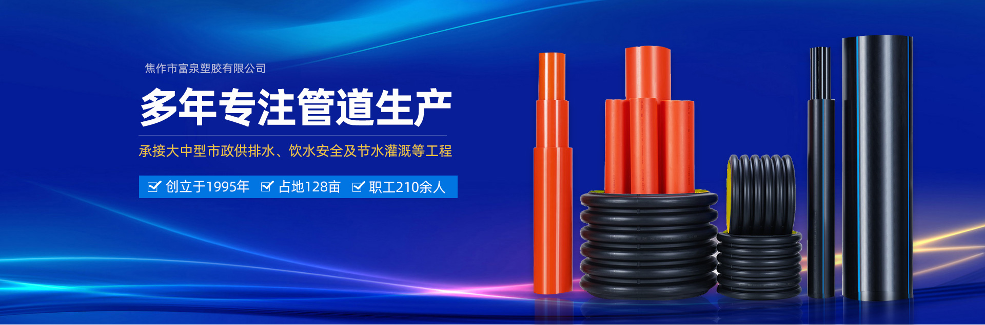 - 焦作市富泉塑膠有限公司,創(chuàng)立于1995年,是一家集研發(fā)、設計、生產、銷售為一體的大型管材企業(yè)。公司位于太極故里、黃河之濱一一河南焦作溫縣。公司占地128畝,現有職工210余人,其中具有中技術職稱的19人。生產、檢驗設備58臺(套),包括PVC實壁管生產線11套、PE實壁管生產線12套、HDPE雙壁波紋管生產線6套、PVC雙壁波紋管生產線5套,檢驗設備14臺(套)。主要產品有:Φ20mm-630mm、各種壓力規(guī)格的PVCU、PVC-M、PE給水管材,PVC-U節(jié)水灌溉管材,HDPE燃氣和礦用管材,DN200-800mm的HDPE、PVC雙壁波紋管及各種噴灌、滴灌工程材料。承接大中型市政供排水、飲水安全及節(jié)水灌溉等工程?! 「蝗苣z公司重視產品的質量、安全、環(huán)保和節(jié)能,在同行業(yè)中率先完成了“新華節(jié)水產品認證”,全方面通過ISO9001:2008國際質量管理體系、IS014001:2004環(huán)境管理體系和OHSAS18001職業(yè)健康安全管理體系的一體化導入,并建立起規(guī)范的現代企業(yè)管理體系。公司以“質量”為先導,采用質量跟蹤、多環(huán)節(jié)把關的方法,組建具有行業(yè)水準的企業(yè)技術檢測中心,常年委托水利部節(jié)水灌溉設備檢測中心、河南省產品質量監(jiān)督檢驗院對產品跟蹤檢測,并由中國人民保險公司承保產品質量。公司連續(xù)多年被河南省水利廳確定為“安全飲水設備、節(jié)水灌溉設備”定點生產企業(yè),并獲得“中國名優(yōu)產品”“質量、服務、信譽AAA企業(yè)”“河南省**產品”“河南省水利企業(yè)”“河南省守合同、重信用企業(yè)”等榮譽稱號。 富泉塑膠公司堅持“用戶為上”的服務理念,長期以來,全方面關注客戶價值,不斷提升服務水平。服務隊伍常年為客戶的產品設計、施工、安裝提供合理的方案和全程細致、周到、**、快捷的技術服務。公司自成立以來,一直堅持以人為本的宗旨,塑造企業(yè)形象,并致力于新產品的開發(fā),憑借雄厚的技術開發(fā)能力,先進的工藝制造流程,嚴格的質量管理保證體系,優(yōu)良的售后服務網絡,已成為河南省大的飲水、灌溉及排水管材設備制造商。產品暢銷全國,而且還以公司雄厚的綜合實力在業(yè)界中占據著重要的地位。